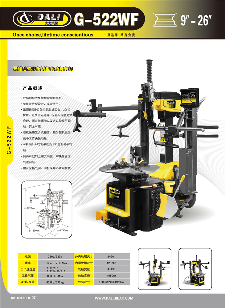 双辅助臂式免撬棍轮胎拆装机G-522WF