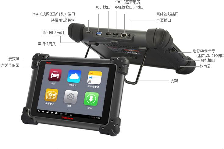 MaxiSys是道通科技历经多年潜心研发的一高度智能化新一代汽车故障诊断系统。上市之后即获得国内外客户的一致认可和高度赞扬,并荣获国际行业重要奖项2014年VISION“新产品"奖。MaxiSys系列产品之一MS908汽车故障诊断电脑是基于全新的Android多任务操作系统,采用A9四核1.40GHz处理器,配备9.7英寸LED电容式触摸屏,及应用VCI无线蓝牙连接方式,可帮助您更方便、快捷诊断汽车故障、管理客户资料和规范业务流程,是维修厂实现无忧诊断的理想产品。